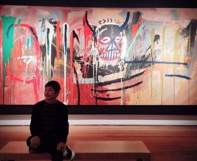 Yusaku Maezawa và một bức tranh khác của Basquiat, bức tranh được mua với giá 57,3 triệu USD năm 2016. Ảnh: BBC