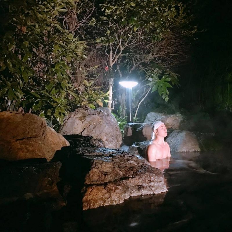 Một trong những trải nghiệm mùa đông ở Nhật mà theo Duy, "ai cũng nên thử một lần trong đời" chính là tắm suối nước nóng. " Ở Kyushu có xây dựng những trạm nhỏ tại những vùng suối nước nóng để ngâm chân, xông hơi chân miễn phí dành cho người dân. Đây còn là vùng suối có nhiều khoáng chất để làm đẹp da, chữa bệnh phong thấp, hô hấp. hiệu quả. Ngoài ra, Duy còn được thưởng thức món ăn Soup đậu hũ non. Món này lấy nước từ nguồn suối nước nóng để chế biến nên vị rất thanh ngọt dù không nêm nhiều gia vị"