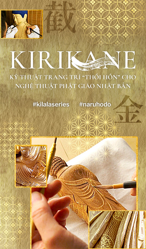 Lá vàng dùng làm Kirikane chỉ dày 10μm (0,00001mm), được làm bằng vàng 24 karat pha thêm bạc và đồng.