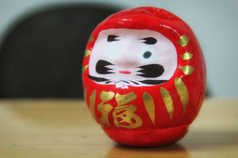 Khi bước chân vào căn phòng nhỏ của anh ấy, chưa kịp bật đèn nên tôi giật thót mình khi nhìn thấy hàng chục con búp bê Daruma đủ kích cỡ đặt trang trọng trên đầu tủ sách. Thân hình tròn bằng giấy bồi màu đỏ, râu ria và lông mày lại vẽ màu đen nhánh. Vài con giương đôi mắt không tròng trắng dã nhìn tôi, một số khác lại có một con mắt đen và một mắt trắng.