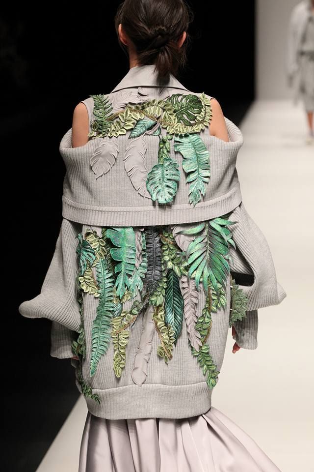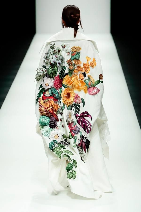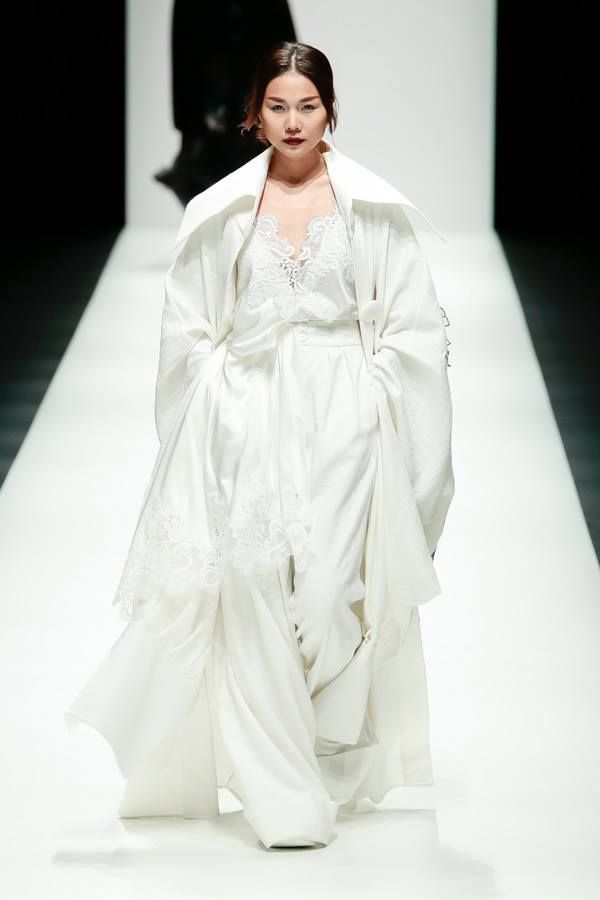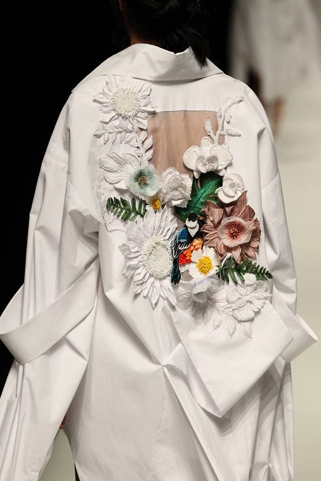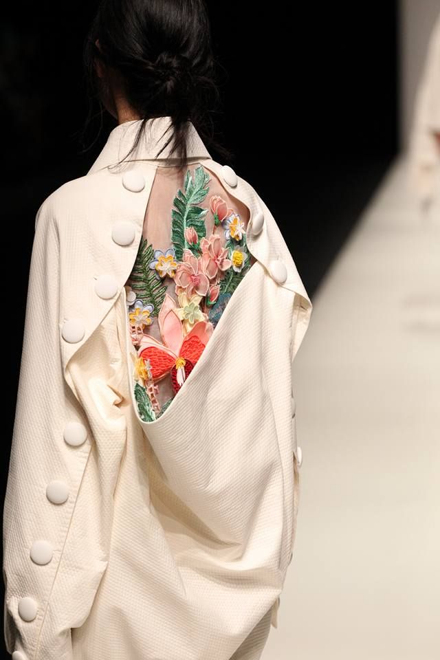 Ban đầu, khi người mẫu bước ra, khán giả chỉ nhìn thấy những mẫu thiết kế oversize vô cùng đơn giản, thậm chí chỉ toàn màu trắng, thế nhưng khi người mẫu quay lung lại, những chi tiết hoa đính kết vô cùng thủ công trên lung áo khiến ai cũng cảm thấy ấn tượng và “choáng ngợp”.