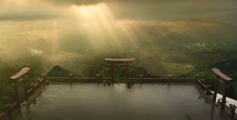 Nhìn ra núi rừng Tây Nguyên qua cổng trời Torii (Ảnh: linhquyphapan.vn)