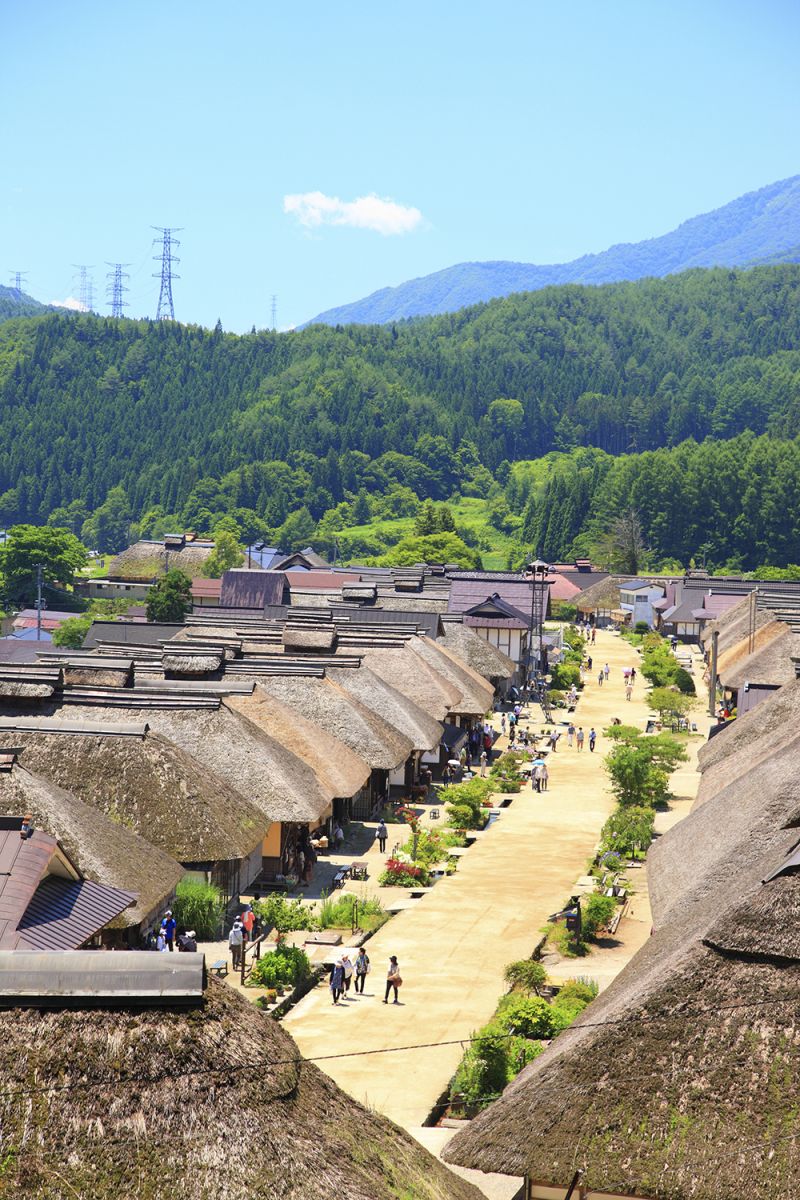 Nép mình bên ngọn núi ở phía Tây Nam tỉnh Fukushima, Ouchi-juku là ngôi làng nhỏ tách biệt, đến nay vẫn còn lưu giữ được nét đặc trưng của không gian thời Edo như những căn nhà lợp mái bằng cách bện cỏ truyền thống nằm dọc hai bên đường. Vì vậy mà ngôi làng được chỉ định là khu vực bảo tồn kiến trúc truyền thống quan trọng của quốc gia. Đây là nơi liên kết Aizu Wakamatsu với Imaichi ở Nikko thời Edo, được xem như "khách sạn cao cấp" để các lãnh chúa nghỉ ngơi.