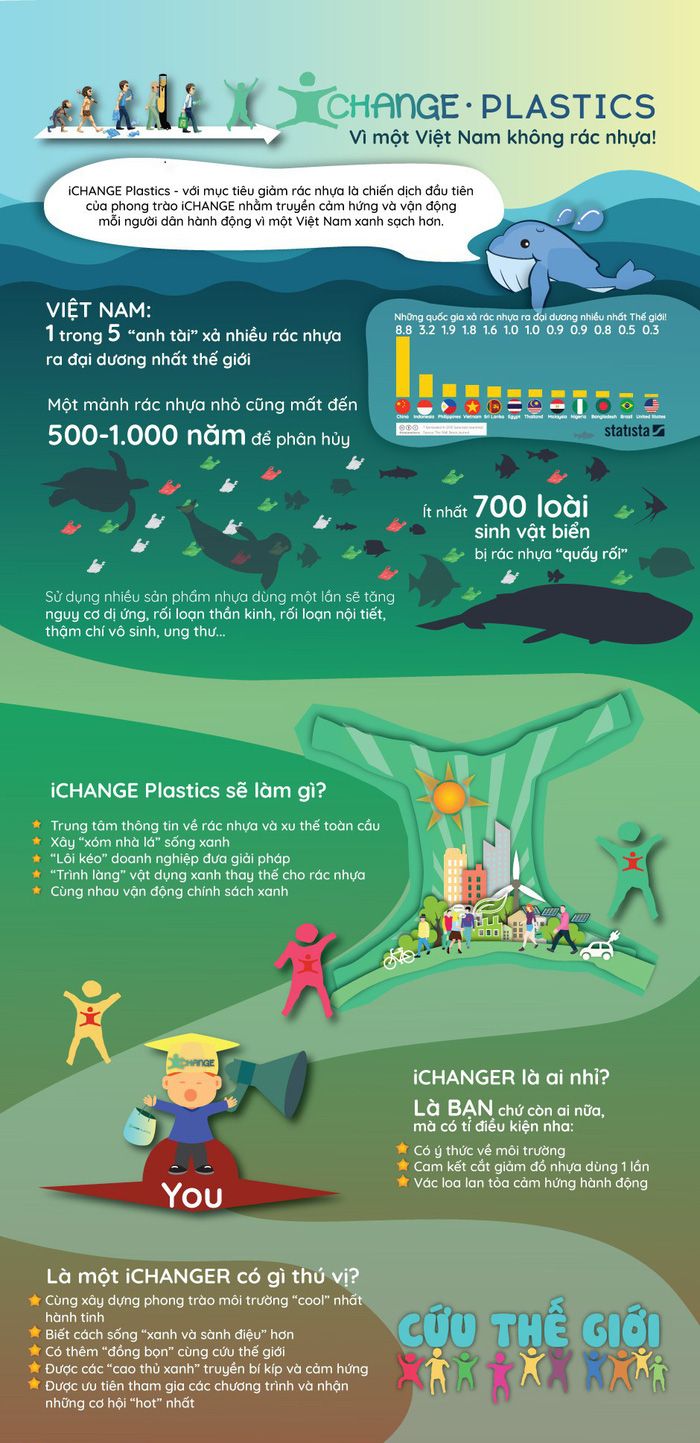 Tổ chức CHANGE cùng Đại sứ thiện chí diễn viên Diễm My 9X đã chính thức khởi động chiến dịch đầu tiên với mục tiêu giảm thiểu rác thải nhựa mang tên iCHANGE Plastics.