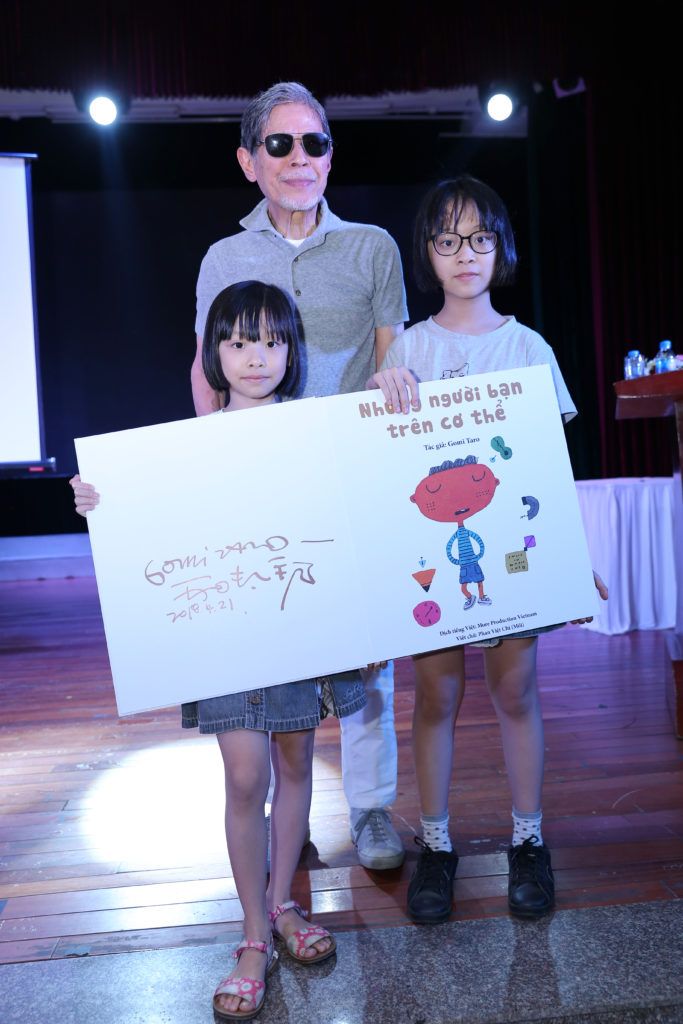 Tác giả Gomi Taro ký tên lưu niệm lên phiên bản đặc biệt của cuốn “Những người bạn trên cơ thể”.