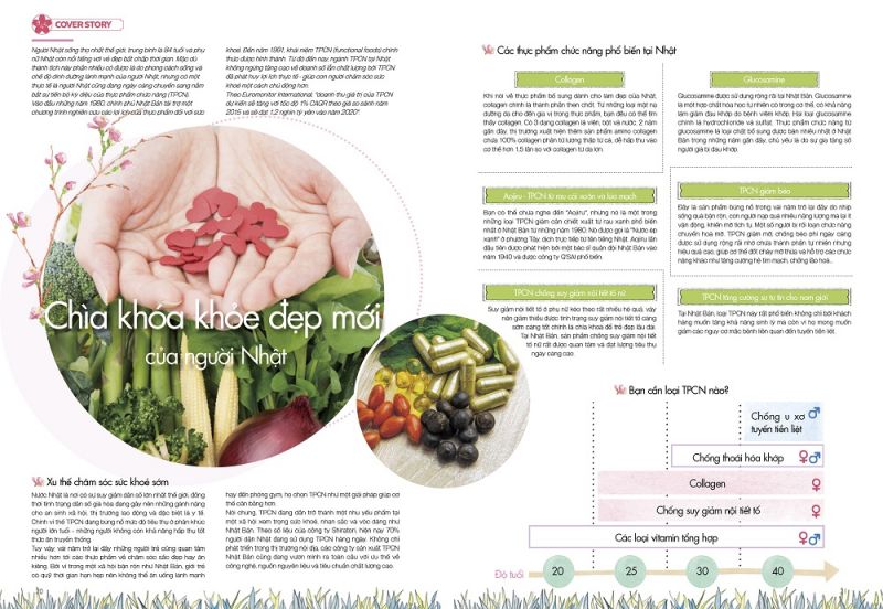 Người Nhật được mệnh danh là dân tộc sống thọ nhất thế giới, trung bình là 84 tuổi và phụ nữ Nhật còn nổi tiếng với vẻ đẹp “bất chấp thời gian”. Bên cạnh những thói quen tốt: Văn hóa ngâm mình trong bồn nước nóng giúp giải độc cơ thể, sử dụng các loại thực phẩm lên men, những bữa ăn theo phong cách Washoku cân bằng dưỡng chất… người Nhật cũng nhanh chóng cập nhật sự tiến bộ kỳ diệu của thực phẩm chức năng.Vào đầu những năm 1980, chính phủ Nhật Bản tài trợ một chương trình nghiên cứu các lợi ích của thực phẩm chức năng đối với sức khoẻ. Đến năm 1991, khái niệm TPCN (functional foods) chính thức được hình thành. Theo số liệu của công ty Shiratori, hiện nay70%người dân Nhật đang sử dụng TPCN hàng ngày. Không chỉ phát triển trong thị trường nội địa, các công ty sản xuất thực phẩm chức năng Nhật Bản đang vươn mình ra toàn cầu với ưu thế về công nghệ, nguồn nguyên liệu và tiêu chuẩn chất lượng cao.