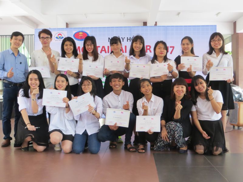 Tại Mottainai Fair 2017, Câu lạc bộ Cựu sinh viên du học Nhật Bản TP. HCM (JUACH) đã trao 3 suất học bổng cho sinh viên vượt khó, học giỏi, khoa Nhật Bản học, Trường Đại học Khoa học Xã hội và Nhân văn với trị giá 2.000.000VNĐ/suất. Tiền thu được từ Mottainai Fair 2017 sẽ dùng để trao học bổng cho các học sinh nghèo của tỉnh Trà Vinh.