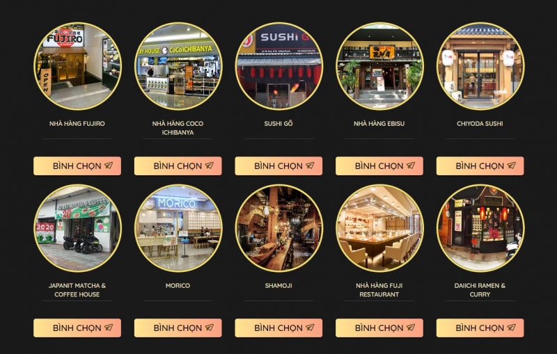 Các nhà hàng lọt vào top 10 đề cử gồm: Chiyoda Sushi, Daichi Ramen & Curry, Sushi Gõ, Morico, Shamoji, Fuji Restaurant, Fujiro, Ebisu, Coco Ichibanya, Japanit Matcha & Coffee House. Kết quả, nhà hàng Chiyoda Sushi đạt số lượng bình chọn cao nhất với chất lượng ngon đúng "chất Nhật".