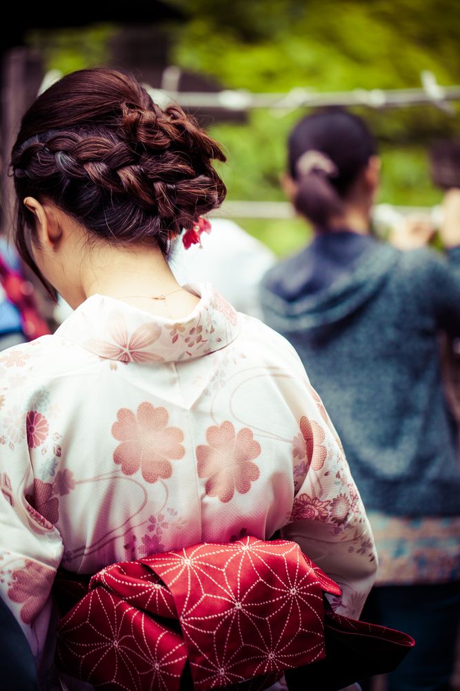 Người mặc Kimono phải có một bộ tóc đẹp và cầu kỳ được làm một cách công phu từ tay những người thợ chuyên nghiệp.
